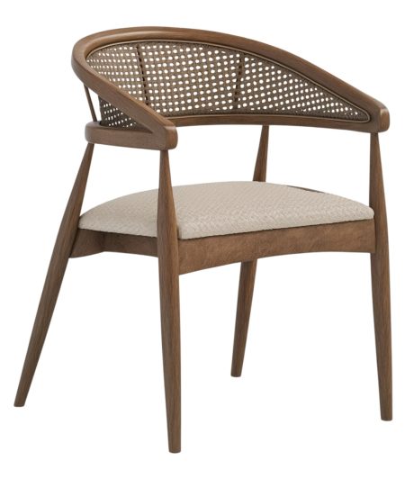 Gürgen ağacından üretilen güçlü iskeleti ve zarif hatlarıyla öne çıkan Merlin Sandalye, yemek odalarına şıklık ve sıcaklık katmak isteyenler için ideal bir seçimdir. Kumaş döşemesi ve ergonomik yapısıyla uzun oturumlarda bile konfor sunar. Retro ve modern çizgileri bir araya getiren tasarımı, farklı dekorasyon stilleriyle kolayca uyum sağlar.